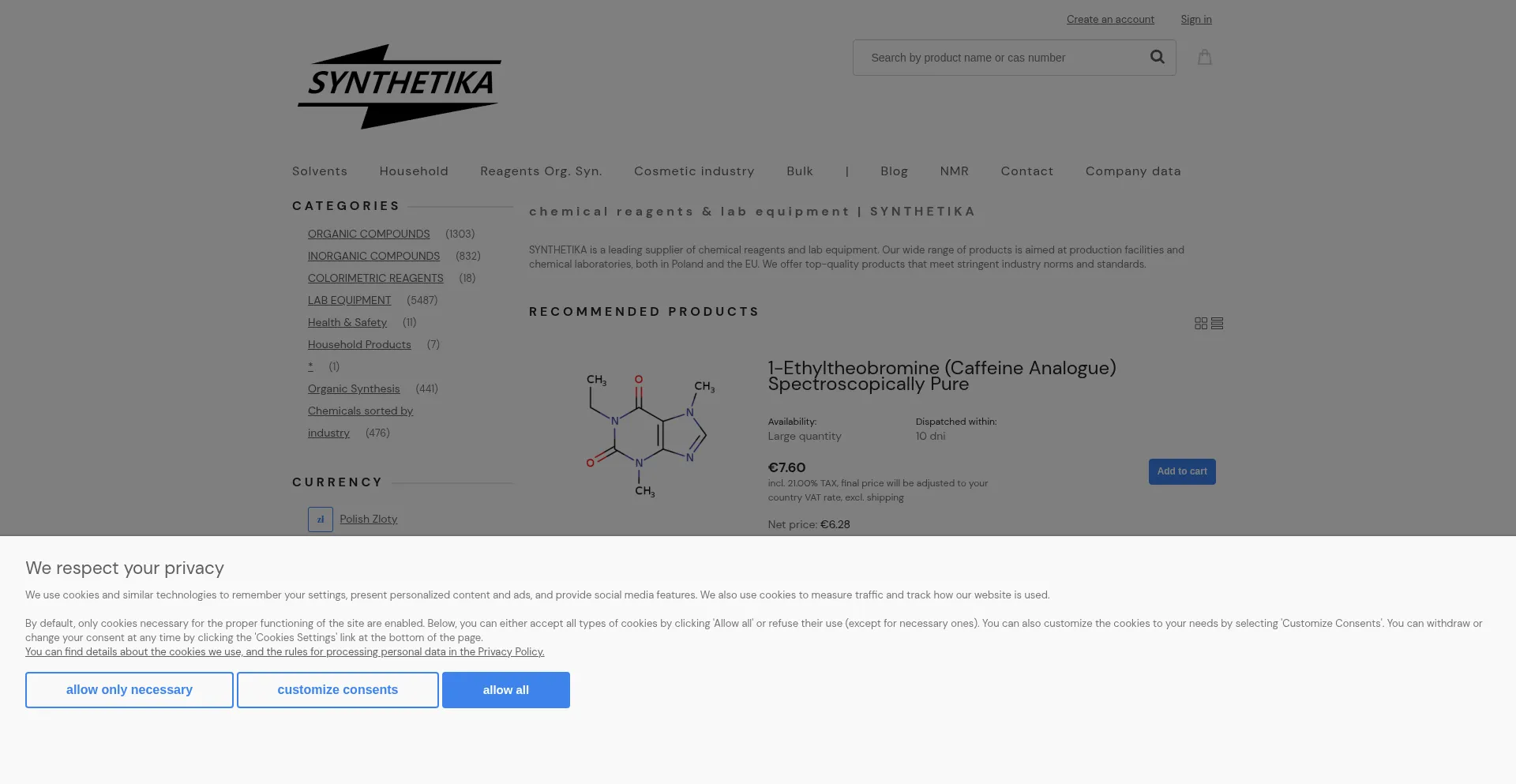 SYNTHETIKA ➤ Chemical Reagents ✔ Lab chemicals at reasonable prices ✔ Solvents, building blocks, colorimetric tests, lab equipment and more ✔ Smooth EU shipping