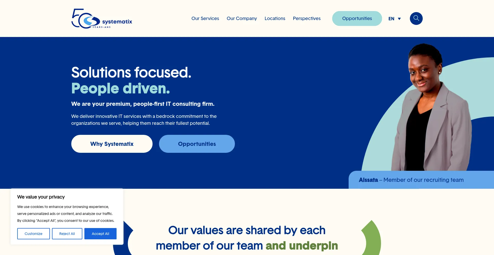 该网站实现符合GDPR或CCPA等隐私法规的cookie同意机制。这表明 systematix.com 遵守数据保护标准并为用户提供对个人数据收集实践的控制。