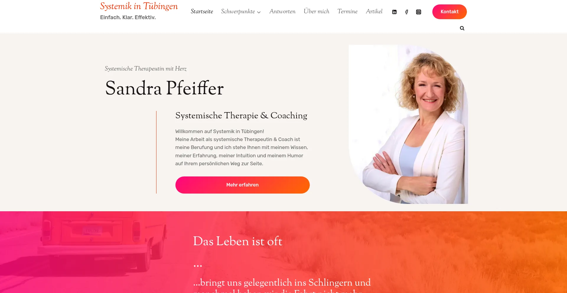 Systemische Therapie & Coaching in Tübingen: Sandra Pfeiffer begleitet einfühlsam und kompetent auf Ihrem Weg zur positiven Veränderung. Terminvereinbarung online möglich.