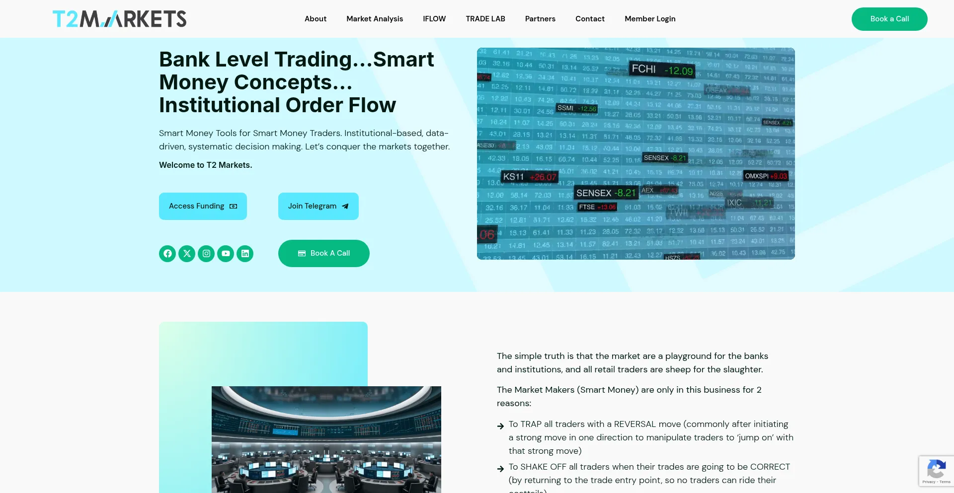 网站上存在社交媒体链接表明 t2markets.com 在社交媒体上维护官方账户,这是可信度和参与度的积极信号。