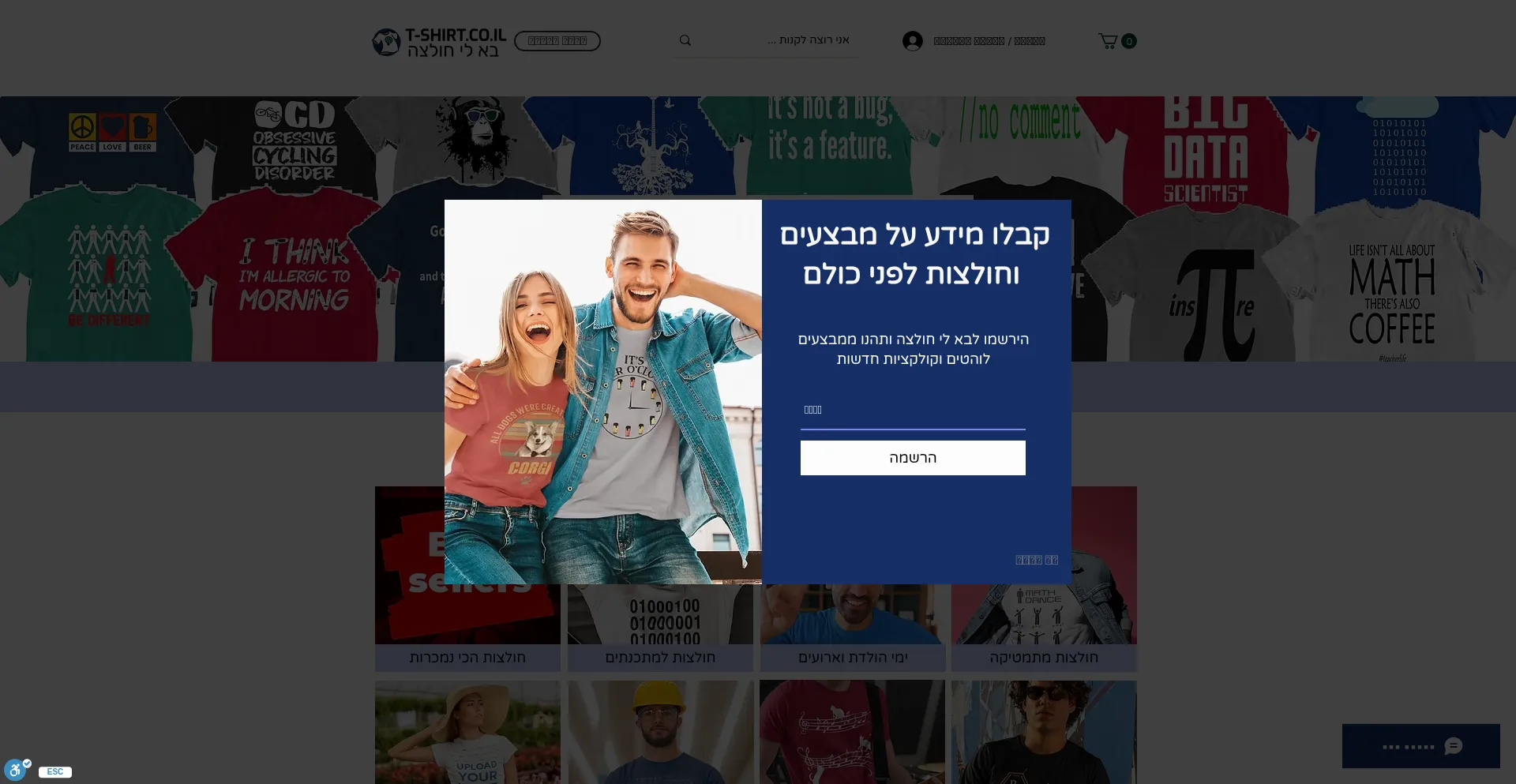 该网站实现数据收集表单,请求个人信息,包括姓名、电子邮件地址、电话号码或其他敏感详细信息。用户应验证 t-shirt.co.il 的合法性并在提交个人数据前查看隐私政策。