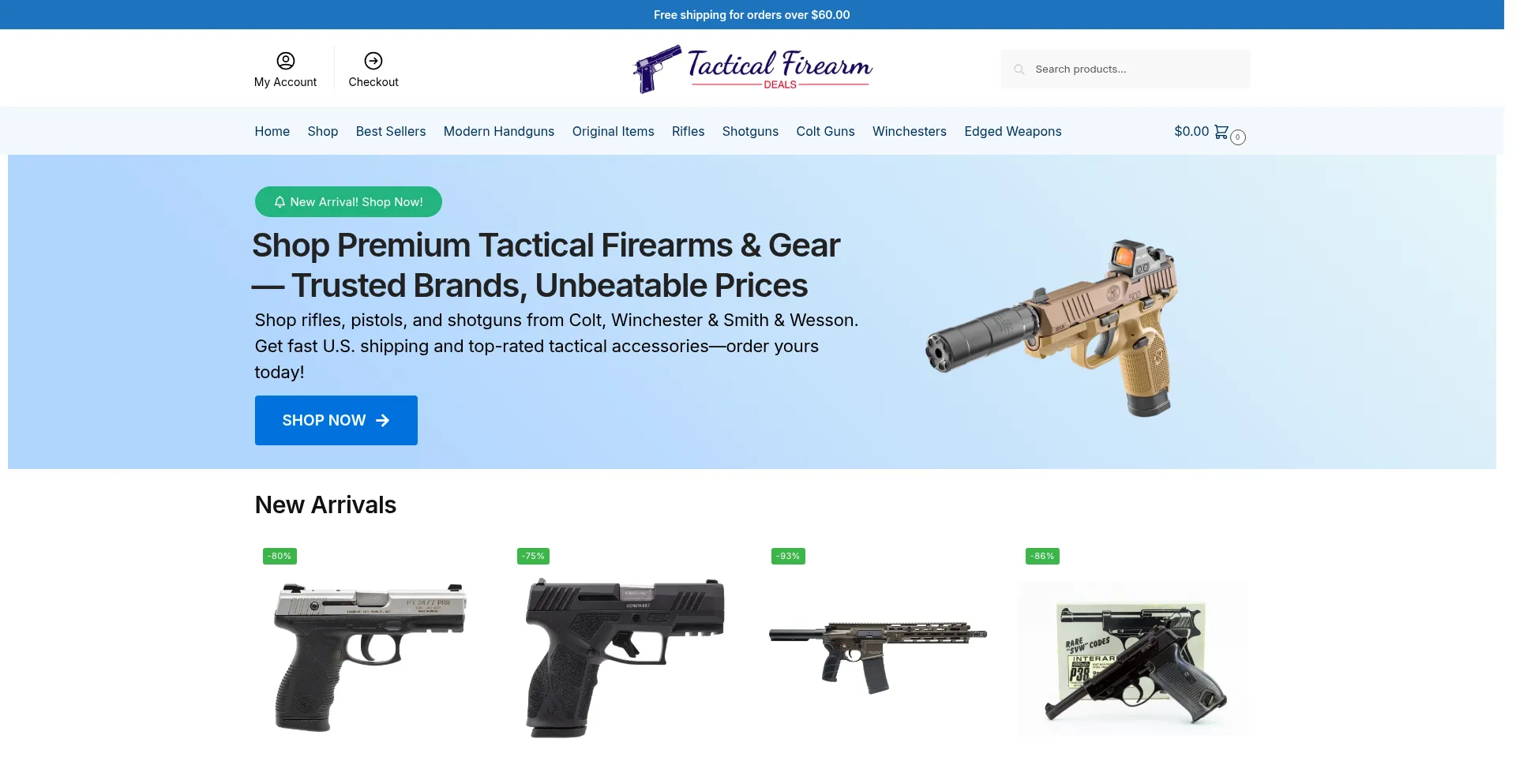 Shop rifles, pistols, and shotguns from top brands like Colt, Winchester & Smith & Wesson. Premium tactical gear & firearm accessories. Fast shipping — order now!