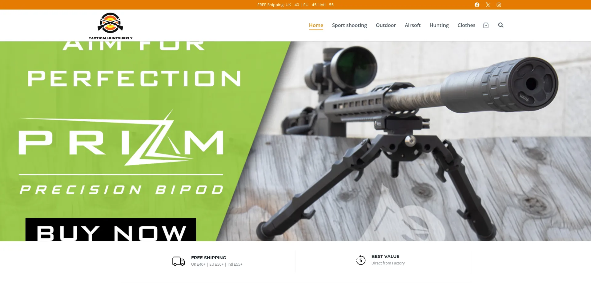 分析显示 tacticalhuntsupply.com 显示社交媒体图标或链接,但不连接到合法的社交媒体档案。这种欺骗性做法通常用于创造虚假合法性,代表需要立即谨慎的欺诈意图的重要指标。