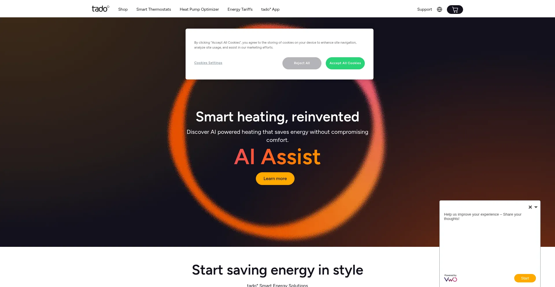 该网站实现符合GDPR或CCPA等隐私法规的cookie同意机制。这表明 tado.com 遵守数据保护标准并为用户提供对个人数据收集实践的控制。
