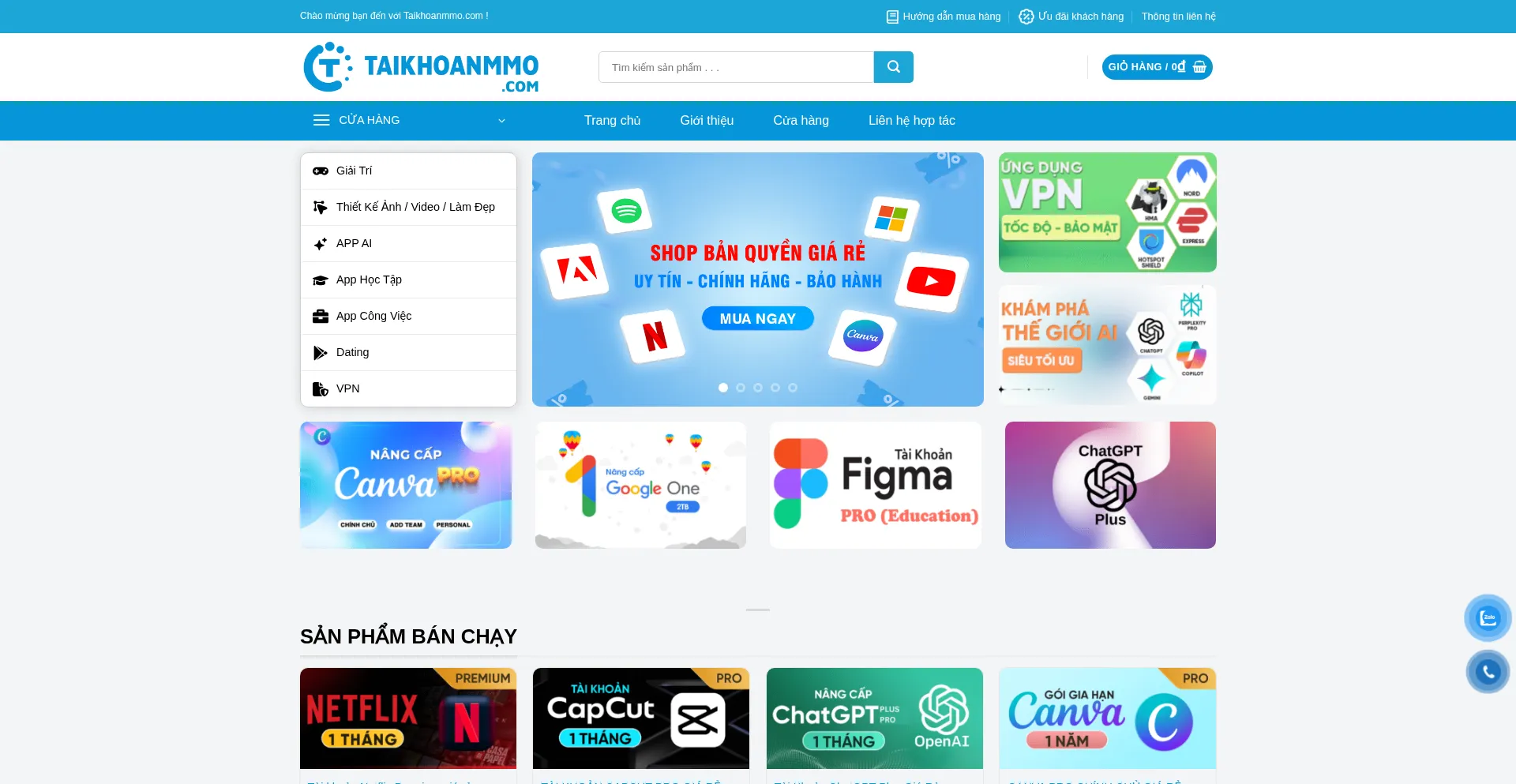 Cung cấp phần mềm bản quyền, game bản quyền lớn nhất Việt Nam. Đầy đủ các sản phẩm: Netflix Premium, Youtube Premium, Chat GPT Pro, Canva Pro, Ngh...
