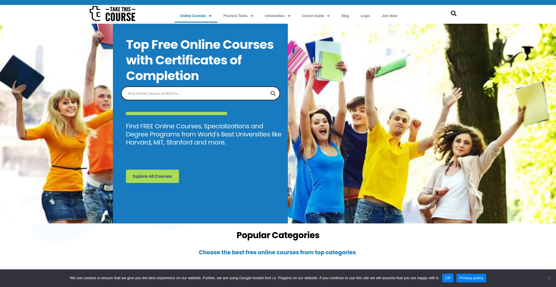 该网站实现符合GDPR或CCPA等隐私法规的cookie同意机制。这表明 takethiscourse.net 遵守数据保护标准并为用户提供对个人数据收集实践的控制。