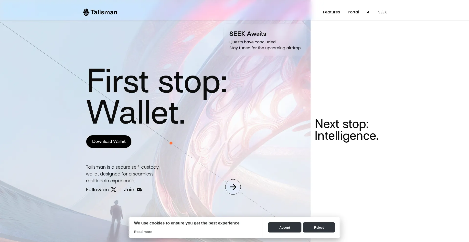 该网站实现符合GDPR或CCPA等隐私法规的cookie同意机制。这表明 talisman.xyz 遵守数据保护标准并为用户提供对个人数据收集实践的控制。