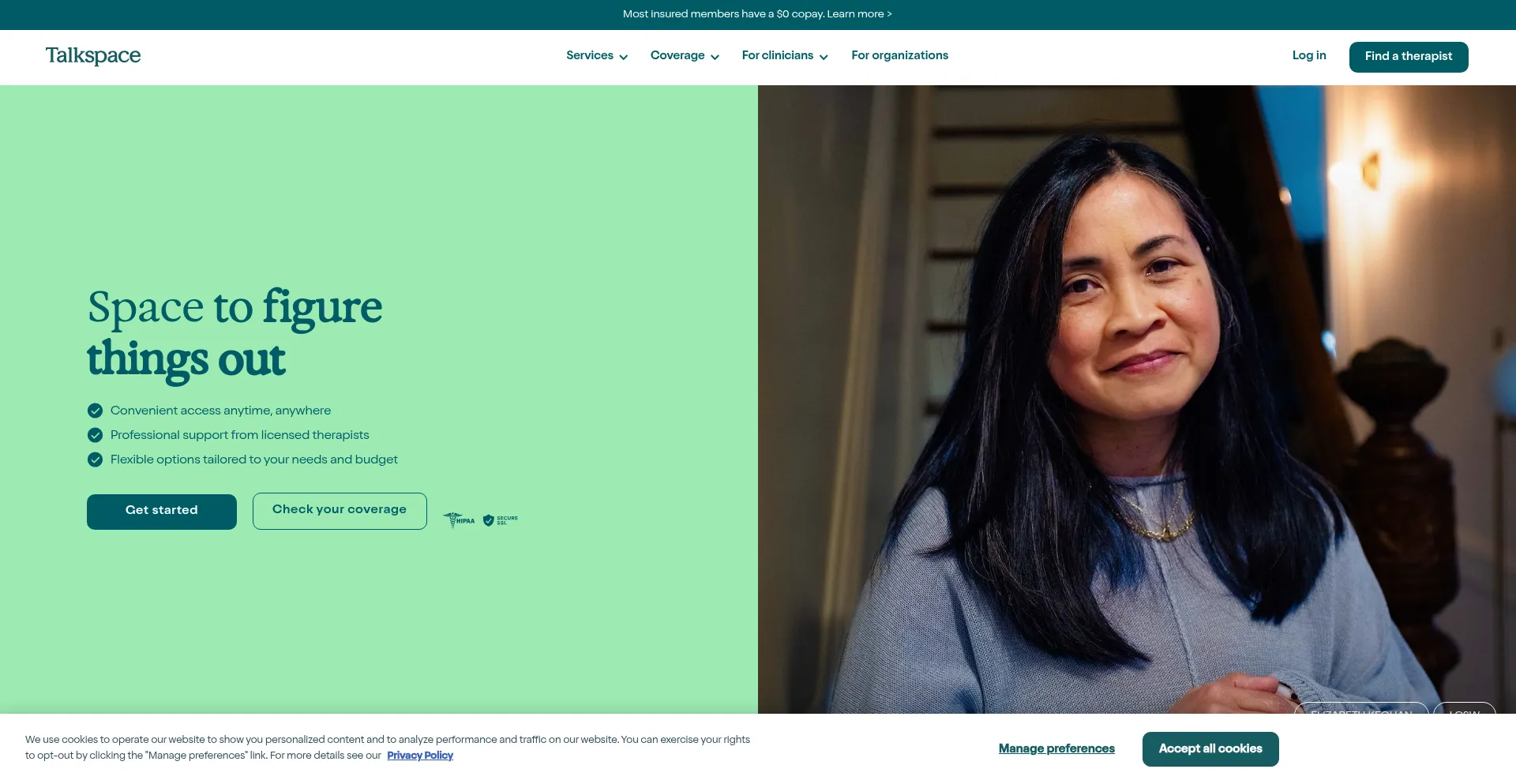 该网站实现符合GDPR或CCPA等隐私法规的cookie同意机制。这表明 talkspace.com 遵守数据保护标准并为用户提供对个人数据收集实践的控制。