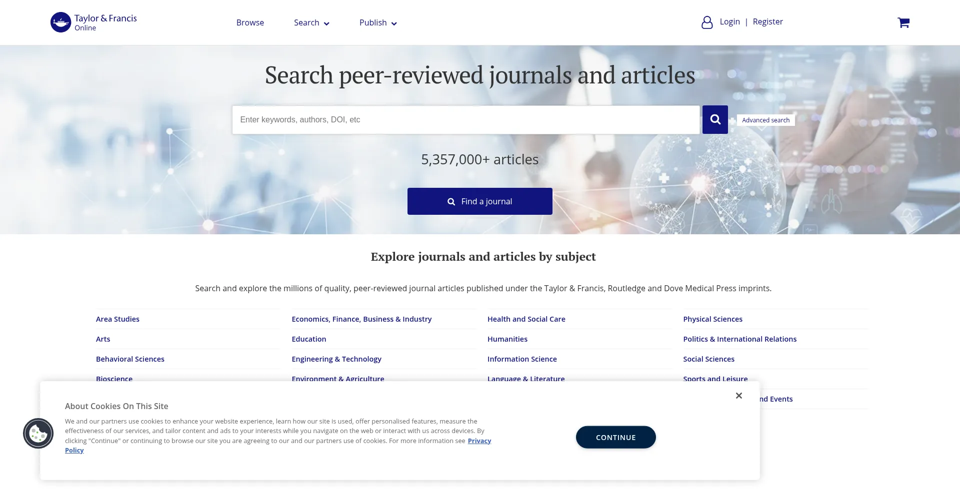 Search and explore the millions of quality, peer-reviewed journal articles published under the Taylor & Francis, Routledge and Dove Medical Press imprints.