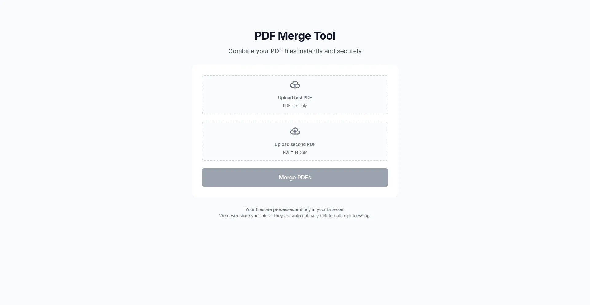 Merge multiple PDF files quickly and securely in your browser. Free to use, no signup required.