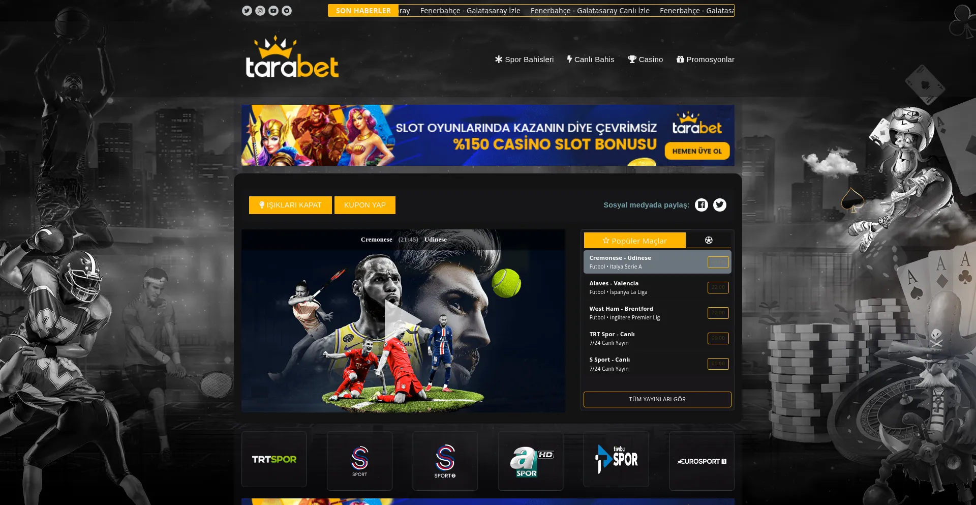 Tarabet TV | Maçı Canlı izle - Kesintisiz Canlı maç yayınları