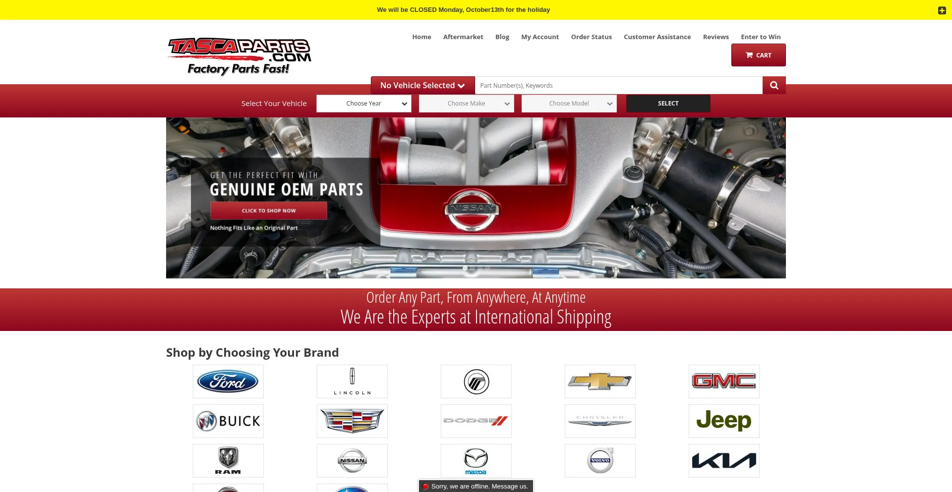 Buy now to save big on genuine OEM auto parts and accessories! Easy online ordering. Huge discounts. Fast shipping. Award-winning customer service. Shop now at TascaParts.com!