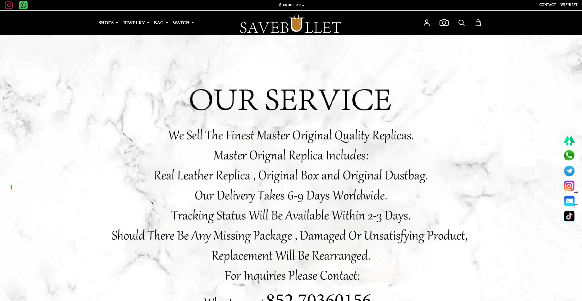 该网站展示奢侈品牌名称或高价值产品。这可能表明潜在的假冒商品或未经授权的品牌使用,特别是如果该网站缺乏官方经销商授权。在评估真实性时请格外谨慎。