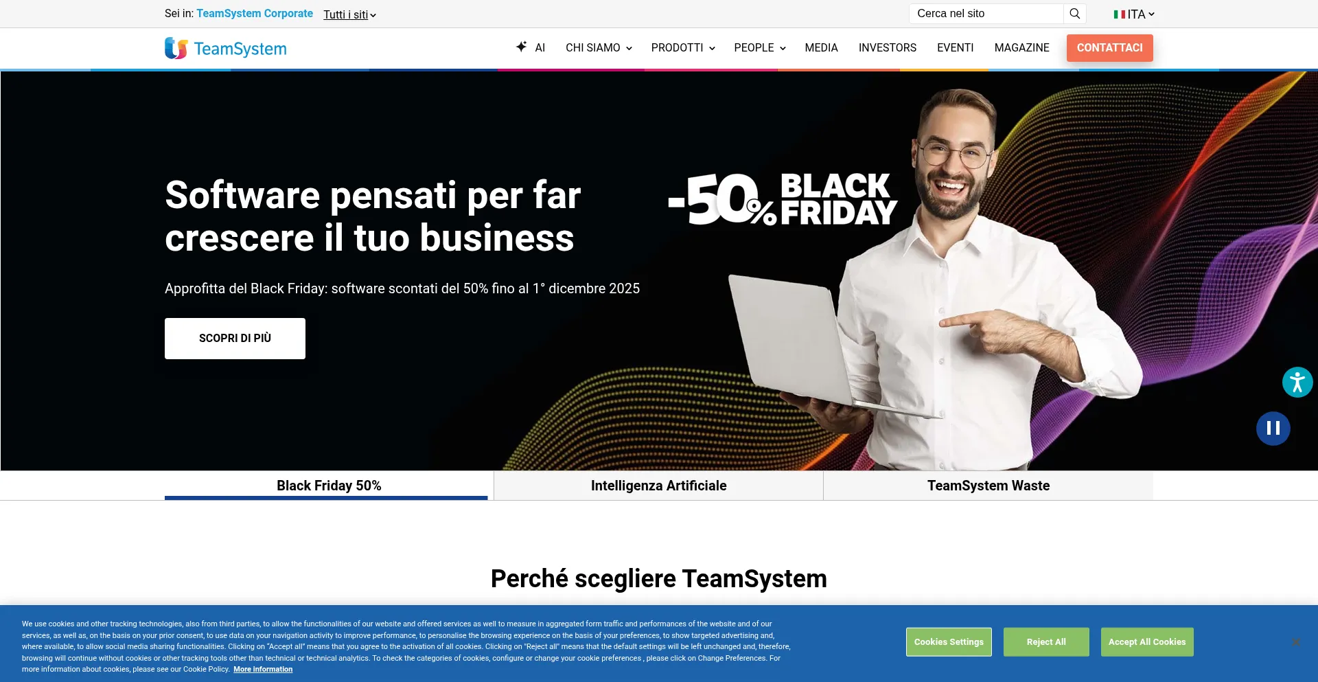 该网站实现符合GDPR或CCPA等隐私法规的cookie同意机制。这表明 teamsystem.com 遵守数据保护标准并为用户提供对个人数据收集实践的控制。
