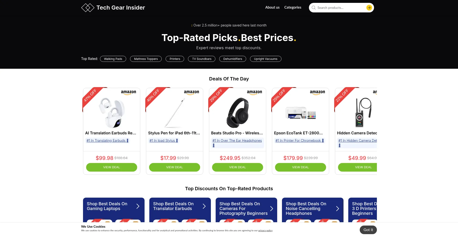 该网站利用流行产品名称和品牌来吸引流量并产生用户兴趣。这些产品可能通过促销活动或折扣策略提供,旨在增加 techgearinsider.com 的访客参与度和转化率。