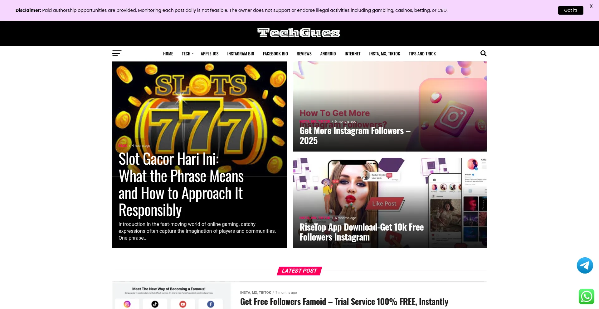 TechGues is a website where you will get the latest in tech news, app reviews,social media trends, Earning tips, Insurence, internet news and more guides.