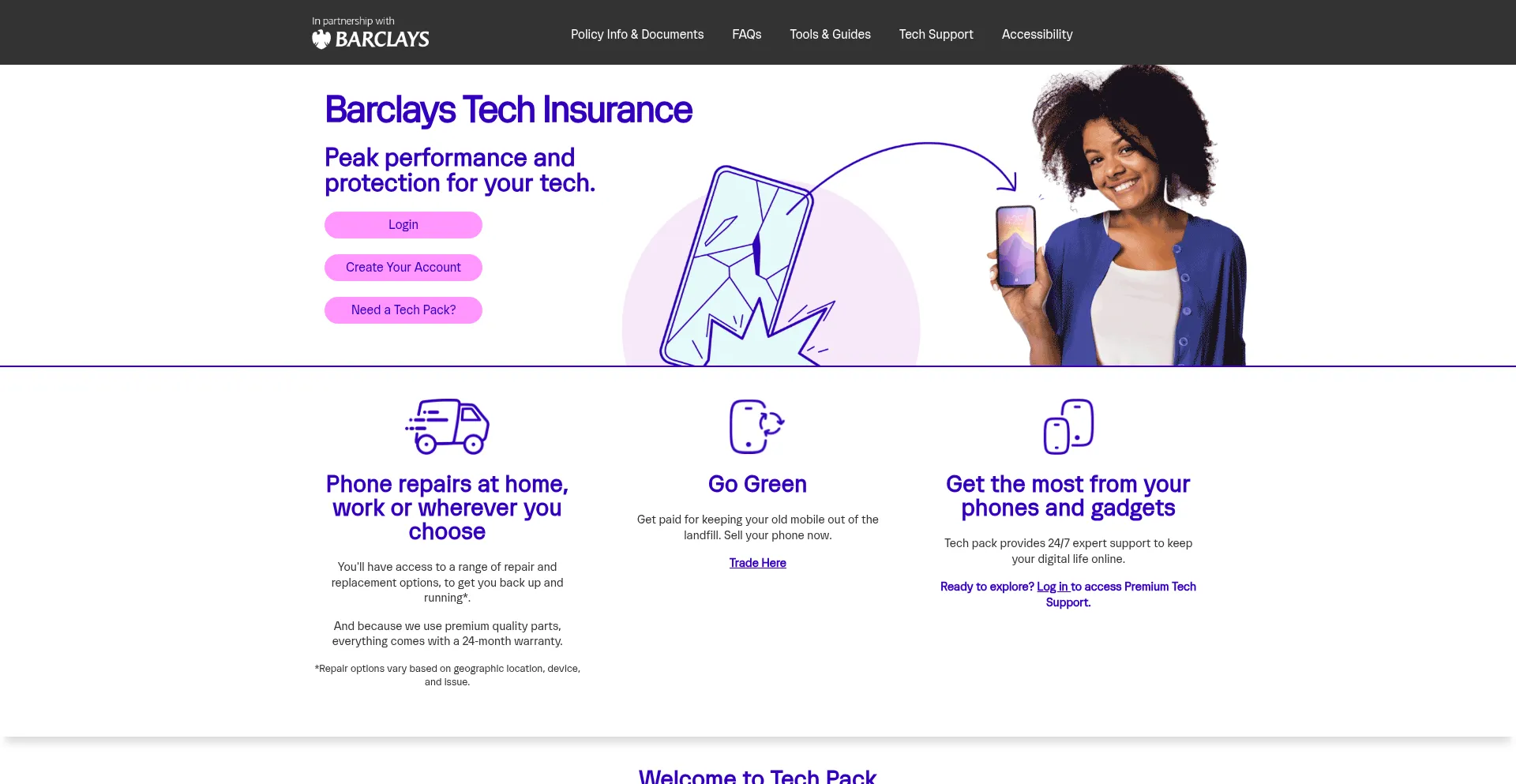 techpackinsurance.co.uk 提供 Android 设备移动应用程序,表明平台存在已扩展到网络服务之外。