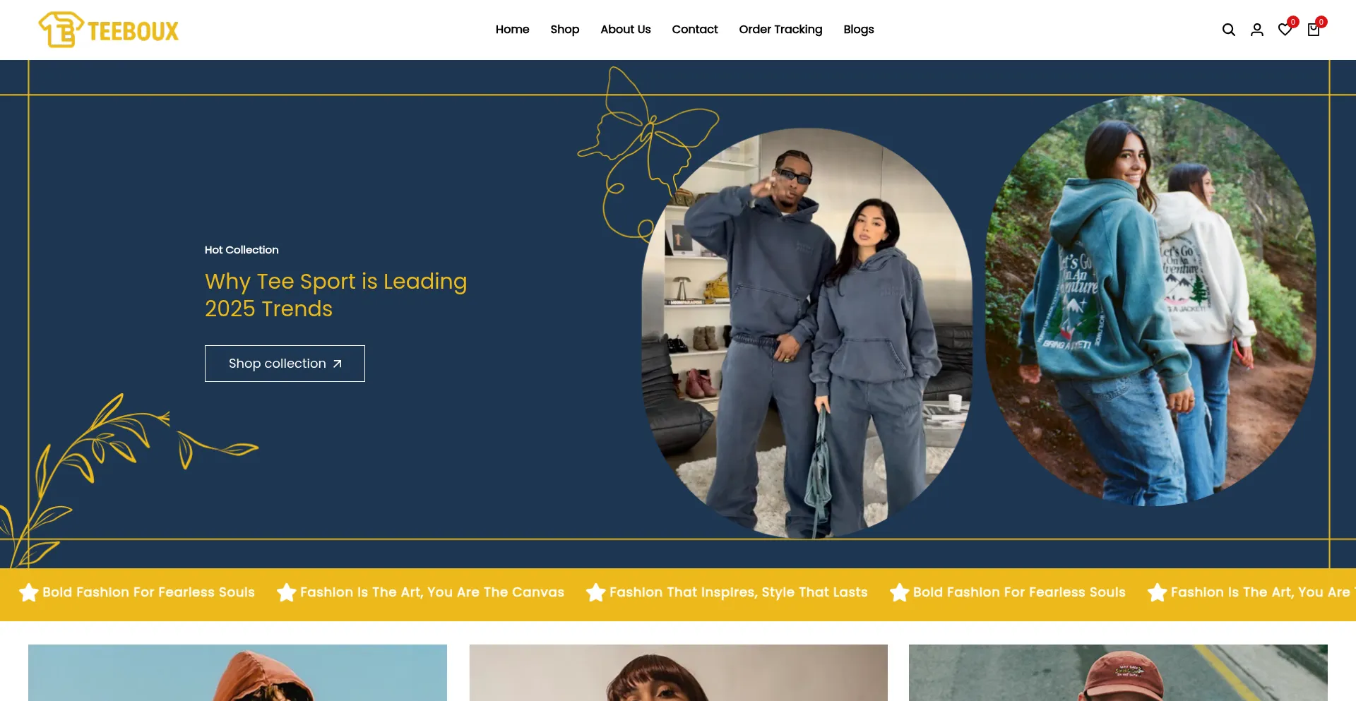 Teeboux is the perfect destination for those who love modern, elegant, and distinctive styles. We offer a wide range of high-quality fashion collections, from everyday wear to s...