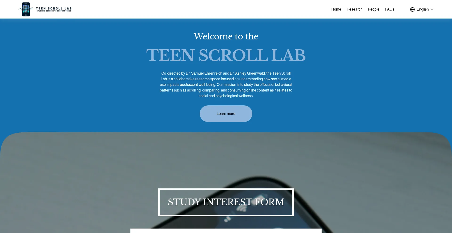 teenscrolllab.com 使用 Google Tag Manager 在其网站上添加和更新追踪代码(标签)。