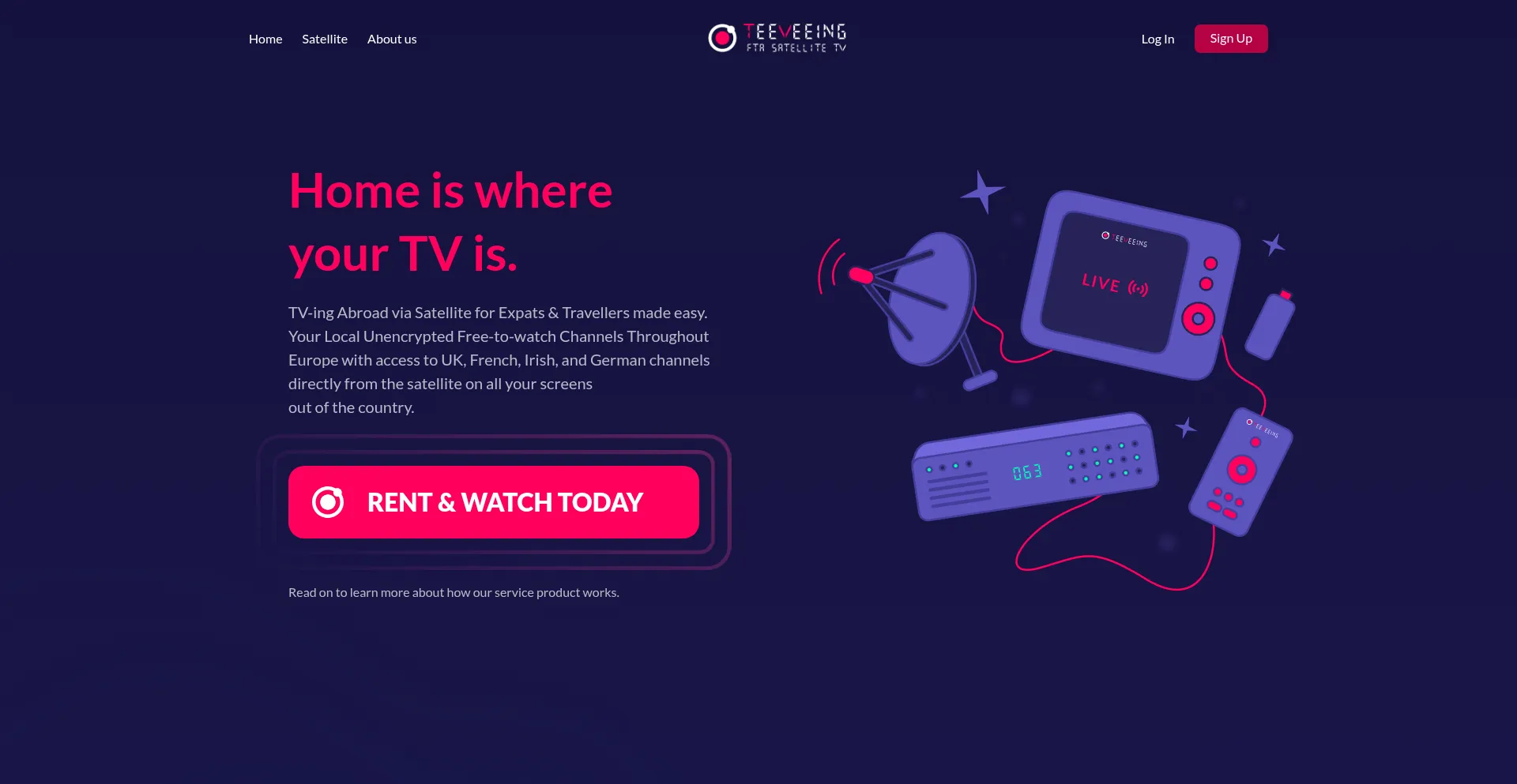 Enjoy TV from your home country mostly anywhere in Europe with TeeVeeing. Access UK, French, Irish, and German channels directly via satellite without needing a dish on your roo...