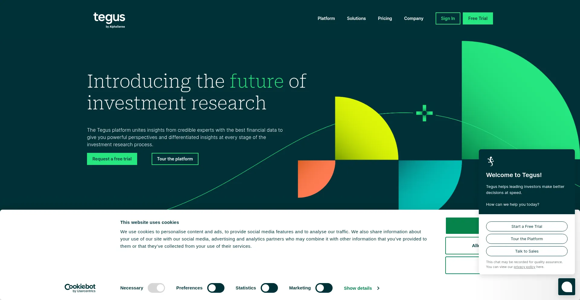 该网站实现符合GDPR或CCPA等隐私法规的cookie同意机制。这表明 tegus.co 遵守数据保护标准并为用户提供对个人数据收集实践的控制。