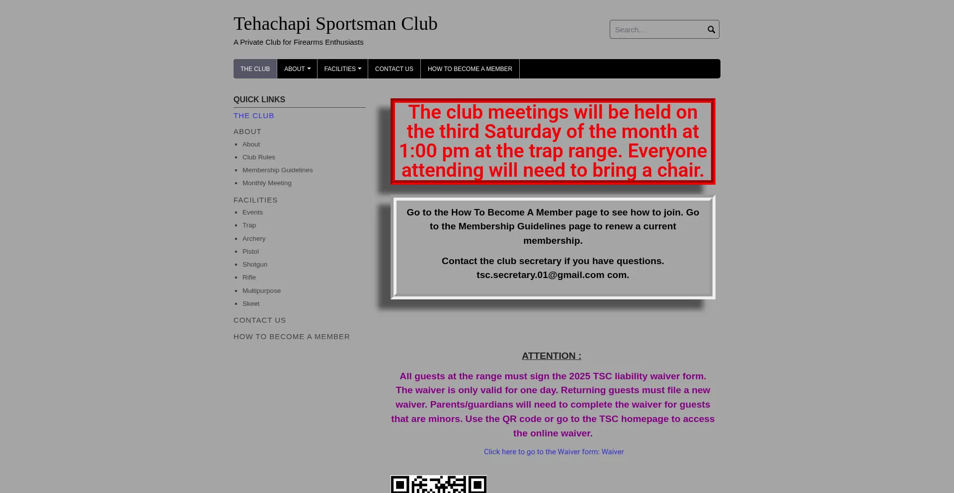 The Tehachapi Sportsman Club (TSC) was organized to promote conservation of wildlife and preserve Second Amendment Rights. Facilities include shotgun, rifle, pistol and archery ...