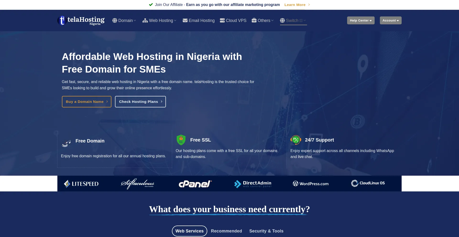 Get started with a web hosting in Nigeria today. Enjoy fast loading speed, 99.9% uptime, free SSL, free domain and 24/7 expert support only on telaHosting.