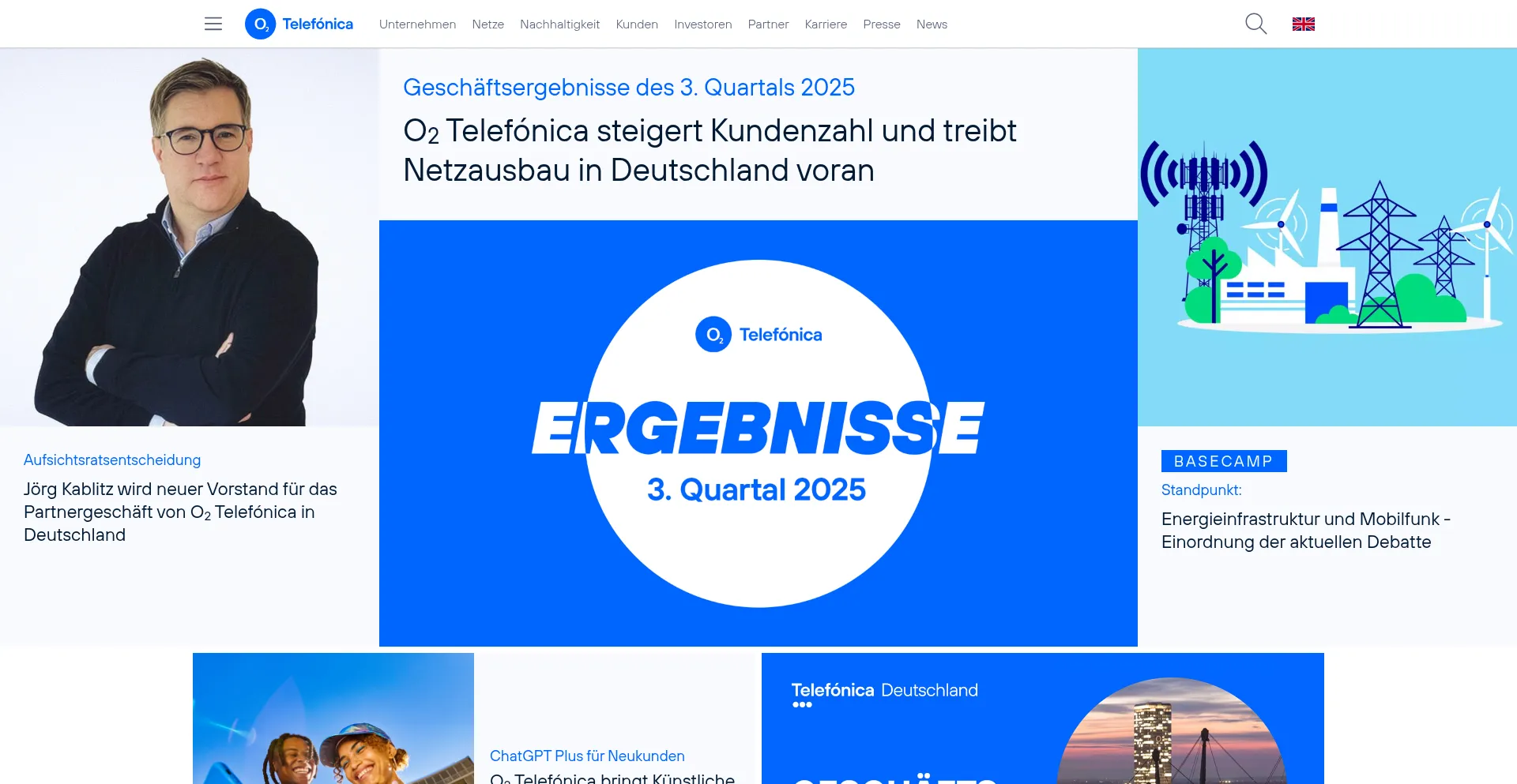 Unternehmensportal von Telefónica in Deutschland: Presse | Nachhaltigkeit | Investor Relations | Wholesale & Partner | Karriere | News