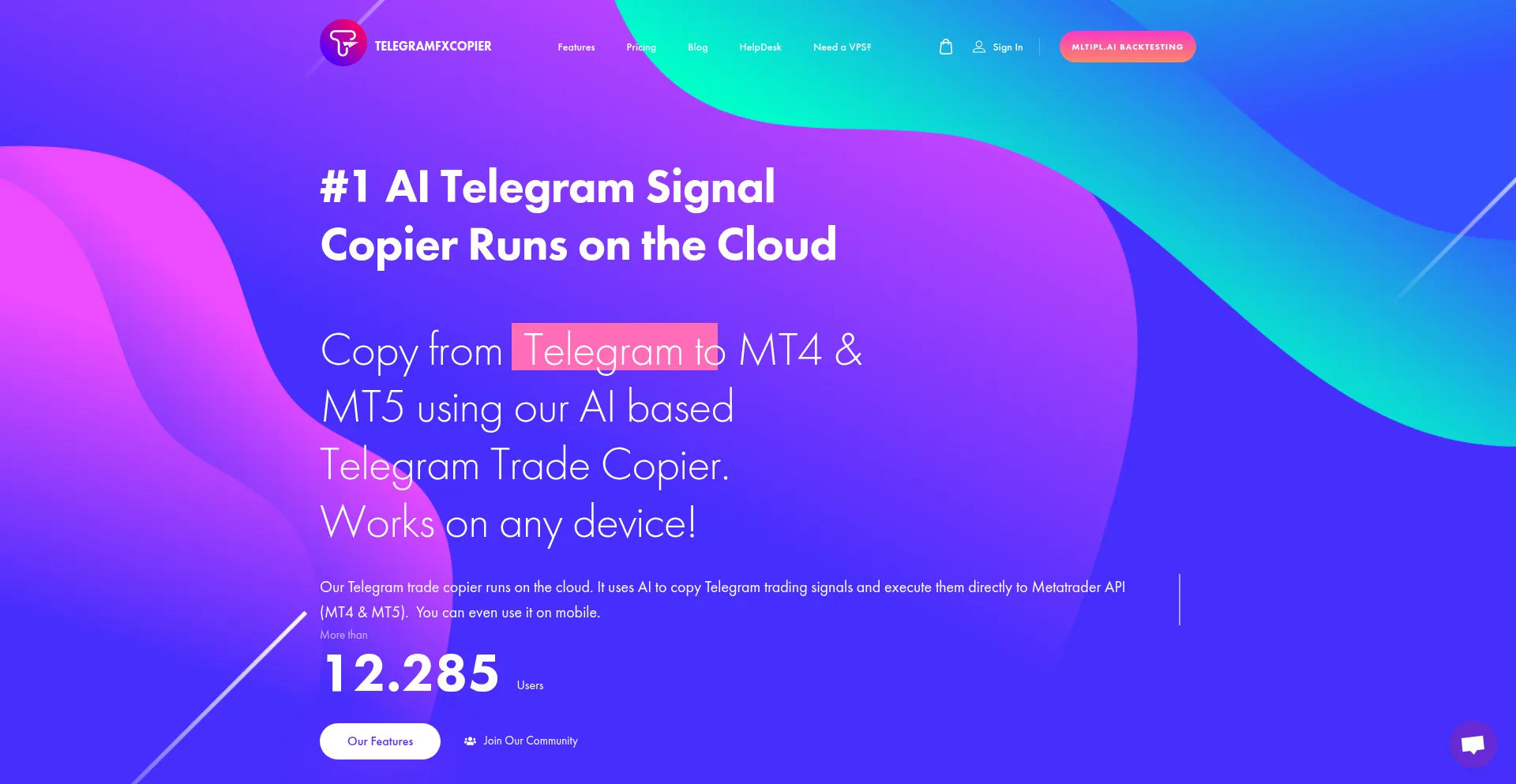 #1 AI Telegram Signal Copier Runs on the CloudCopy from Telegram to MT4 & MT5 using our AI based Telegram Trade Copier. Works on any device!Our Telegram trade copier runs on the...