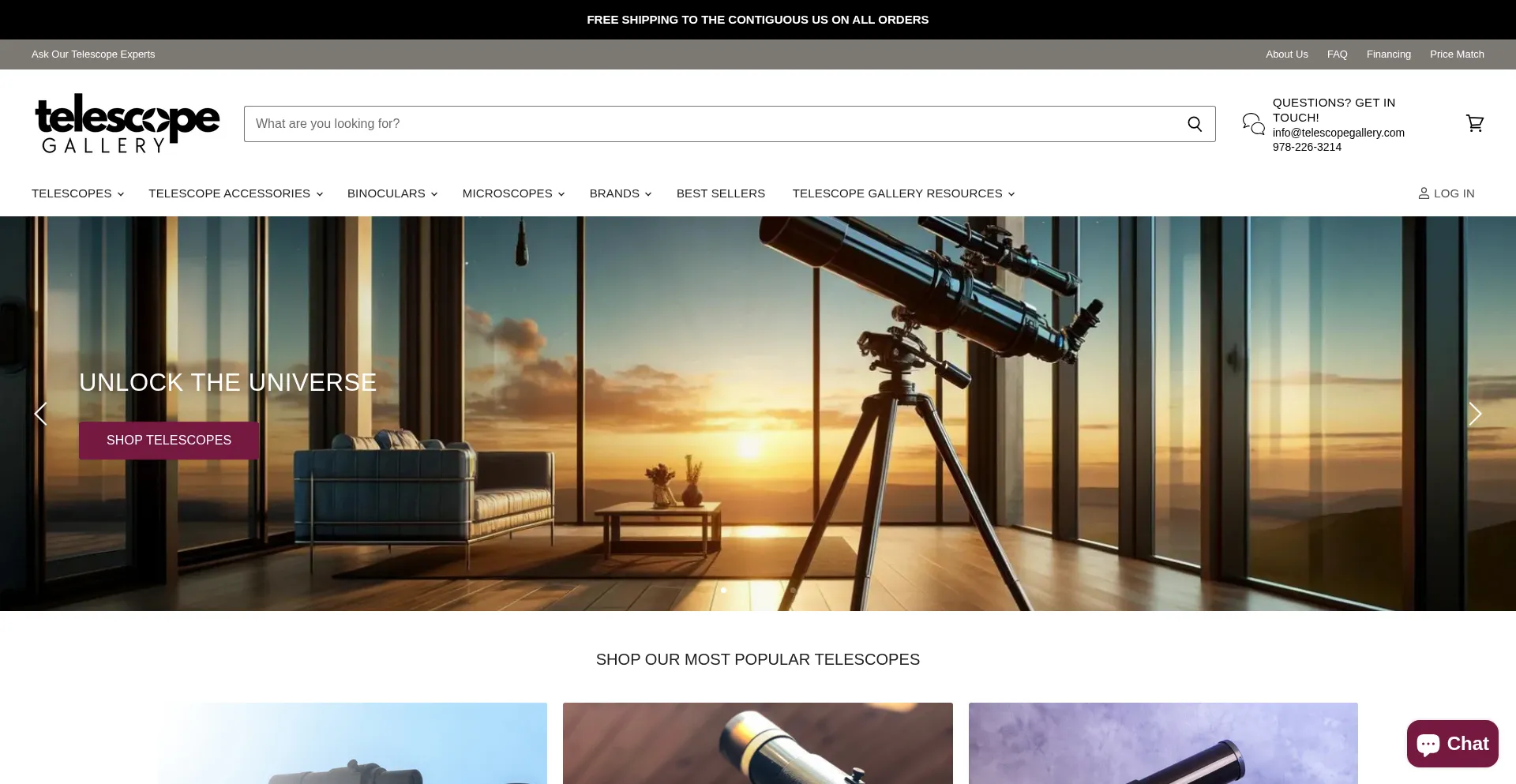 Explore the universe with Telescope Gallery’s range of high-quality telescopes for all levels, from beginners to pros. Discover top brands, expert advice, and stellar customer...