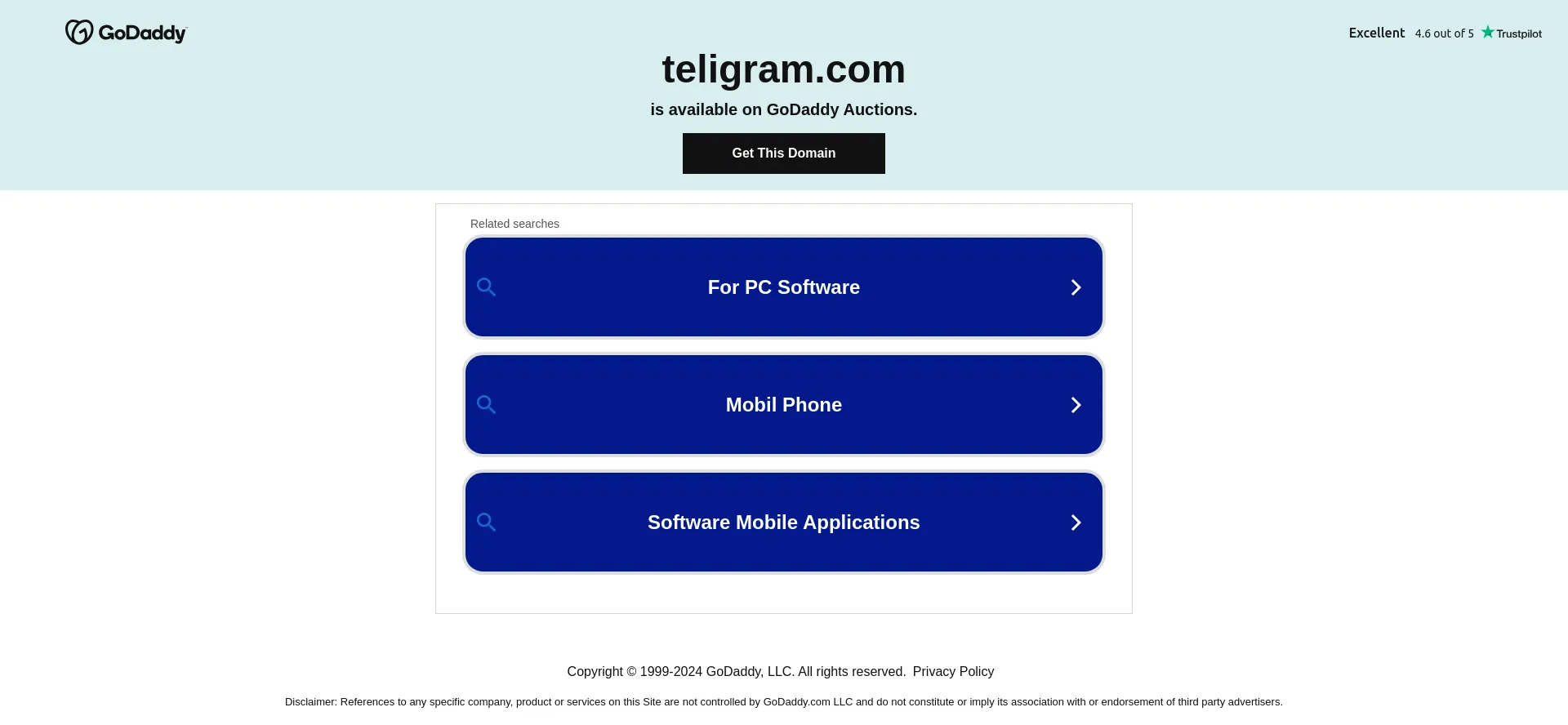 此域名(teligram.com)已注册但当前处于非活动状态,显示占位内容如广告或域名销售通知。停放域名通常为未来开发、转售目的或通过广告网络创收而保留,但缺乏活跃的网络服务或内容。