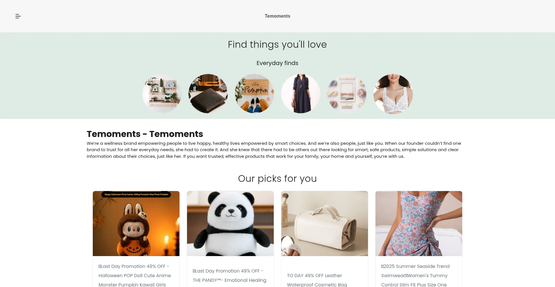 分析表明 temoments.com 作为电子商务平台运营,促进商品或服务的在线交易。该网站实现了购物车功能、支付处理系统和产品目录功能,这些是商业零售运营的典型特征。