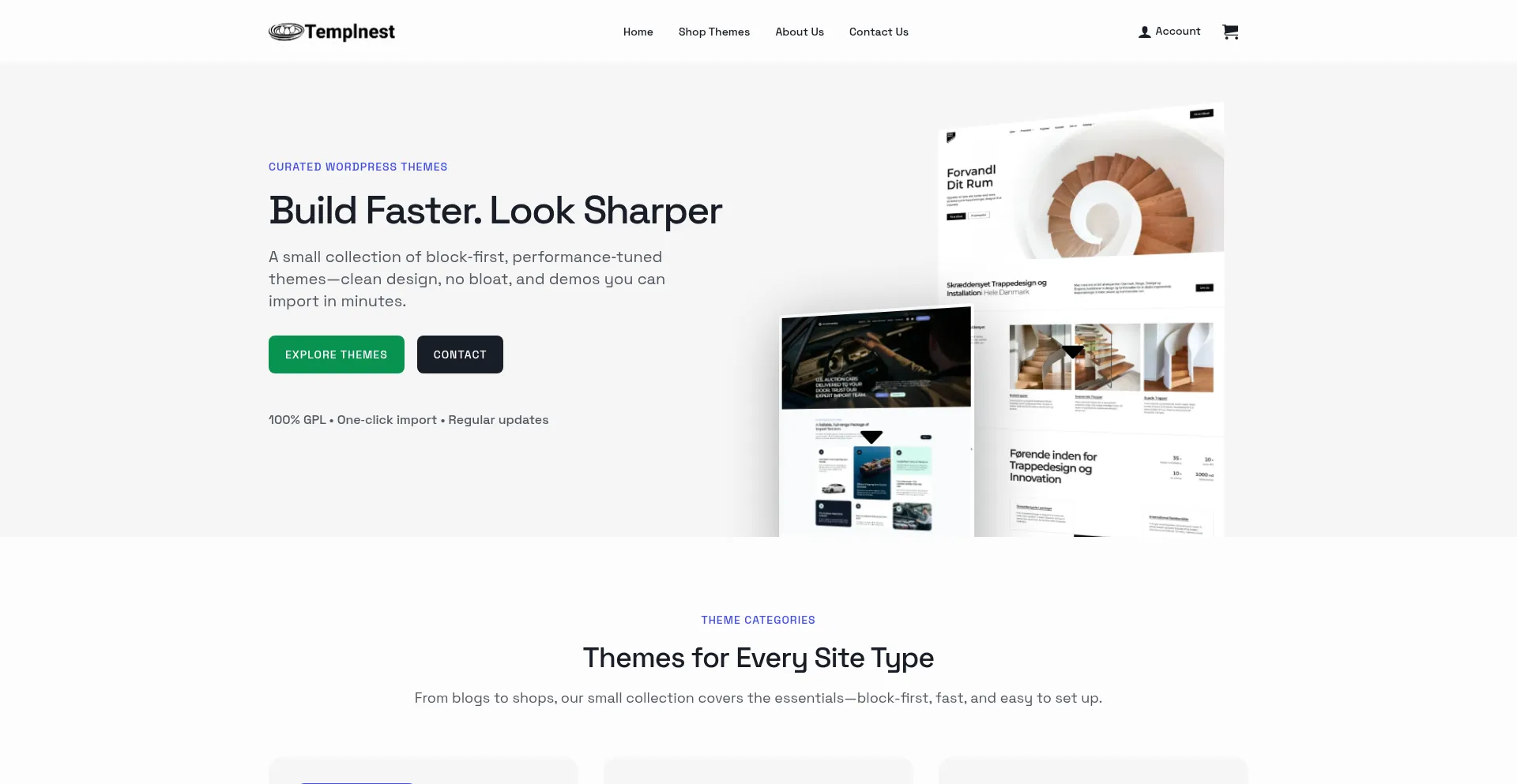 Small shop of Gutenberg-first, Woo-ready themes. One-click demos, lean code, 100% GPL, friendly support. Launch faster with clean, accessible design.