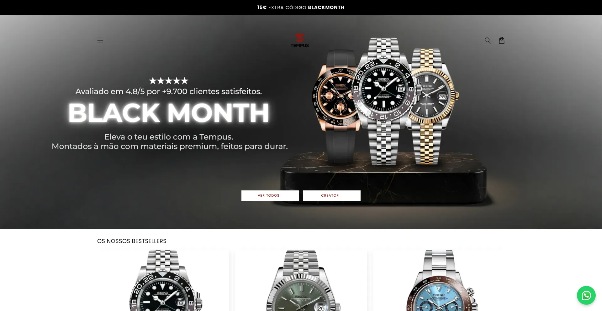 Relógios personalizados montados à mão pela TEMPUS. Inclui kit de ajuste de bracelete, caixa em couro e garantia de 3 anos. Envio rápido em 3 a 7 dias. Stock limitado.