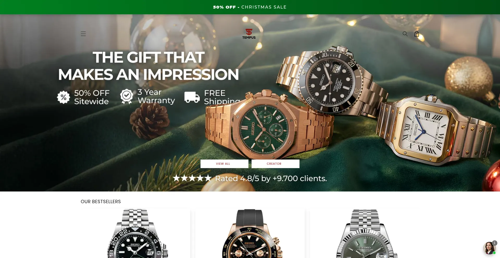 Handcrafted Seiko mod watches by TEMPUS. Includes free strap adjustment kit, leather box & 3-year warranty. Fast 3–7 day shipping. Limited stock.