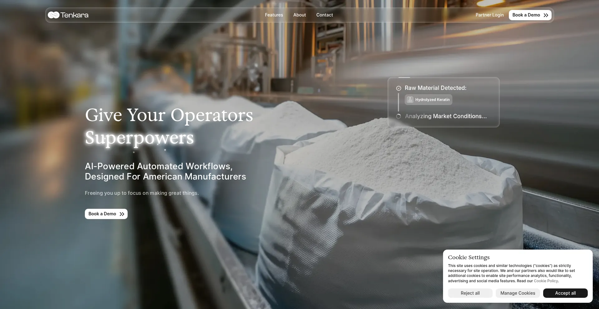 AI built for manufacturers. Tenkara powers operations, streamlines sourcing, and keeps supply chains moving so your team can focus on building.
