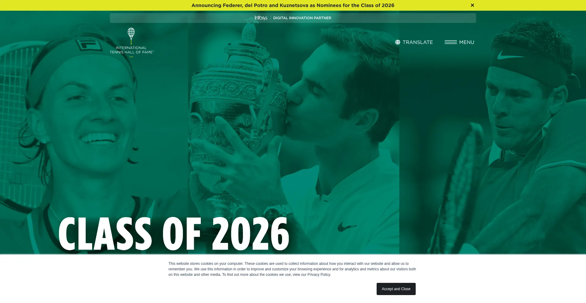 网站上存在社交媒体链接表明 tennisfame.com 在社交媒体上维护官方账户,这是可信度和参与度的积极信号。