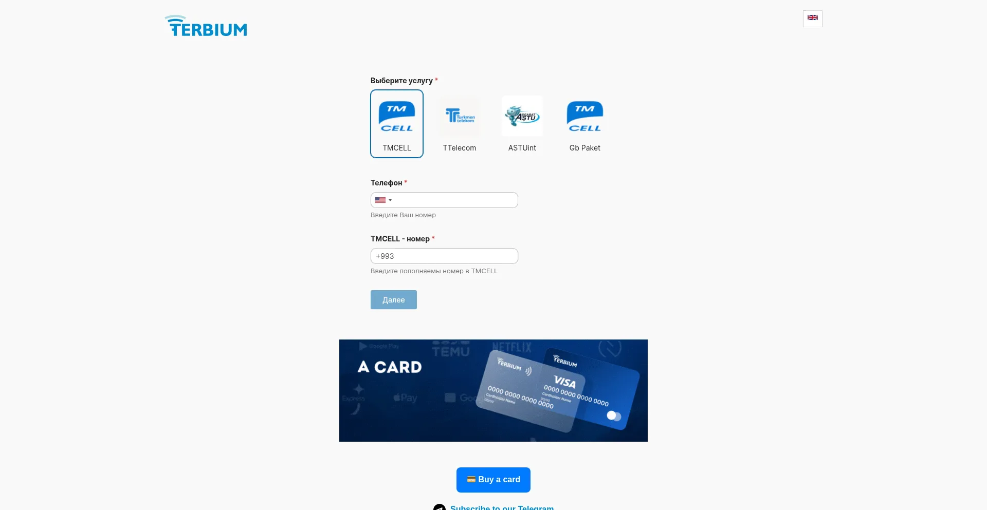Online top-up for TMCELL (Altyn Asyr), Turkmen Telecom, and ASTU services. Instant payment in RUB, USD, EUR, TL, and KZT. Support via Telegram and WhatsApp.