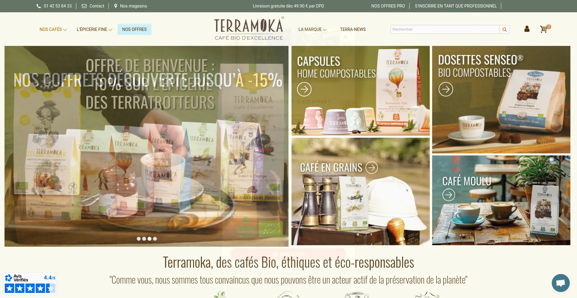 Des cafés bio d'excellence en moulu, grains, capsules biodégradables compatibles Nespresso®, dosettes type Senseo® dans des emballages biodégradables.