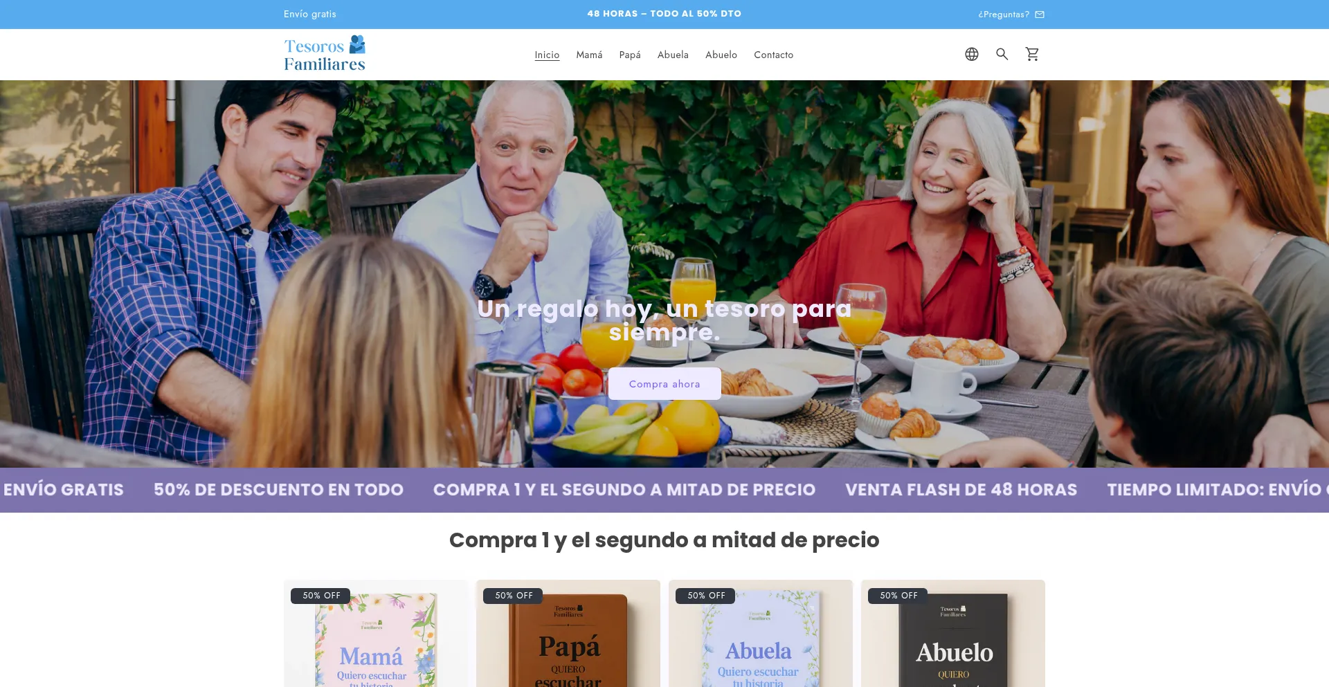 Descubre los libros de recuerdos únicos de Tesoros Familiares: un regalo especial para conservar y compartir historias de vida. Más de 100 páginas y 250 preguntas. Perfecto p...