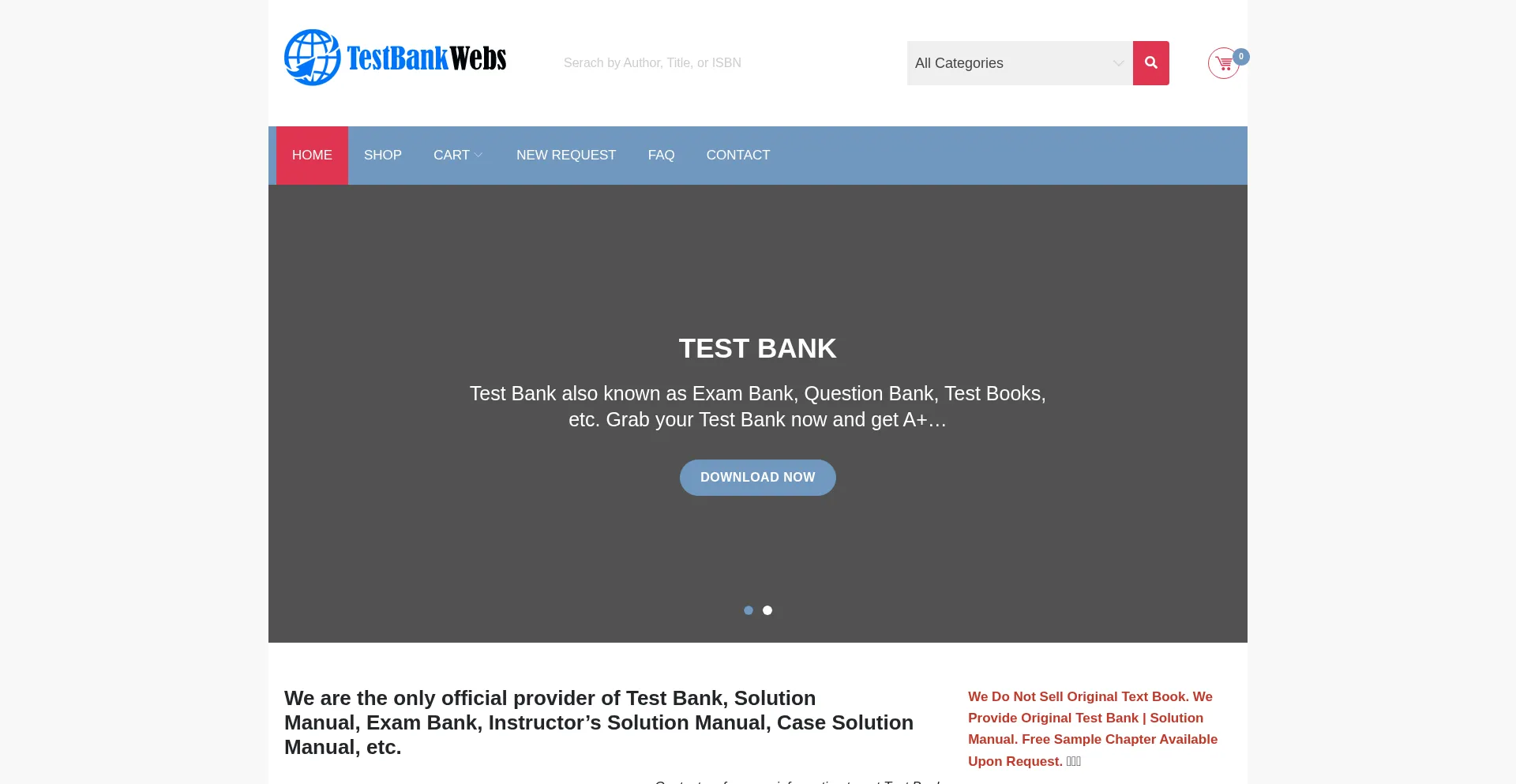 分析表明 testbankwebs.com 作为电子商务平台运营,促进商品或服务的在线交易。该网站实现了购物车功能、支付处理系统和产品目录功能,这些是商业零售运营的典型特征。
