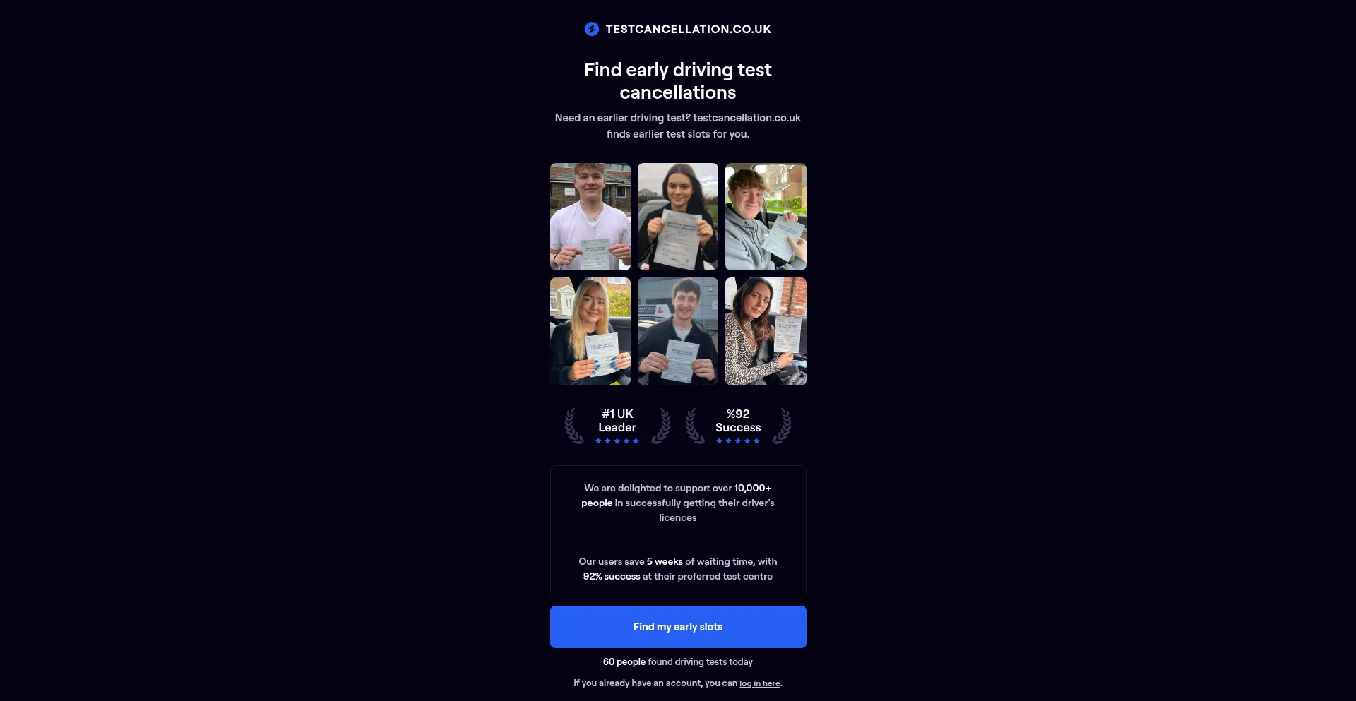 Find driving test cancellations across the UK. Get earlier test dates at your preferred DVSA test centre with instant alerts.