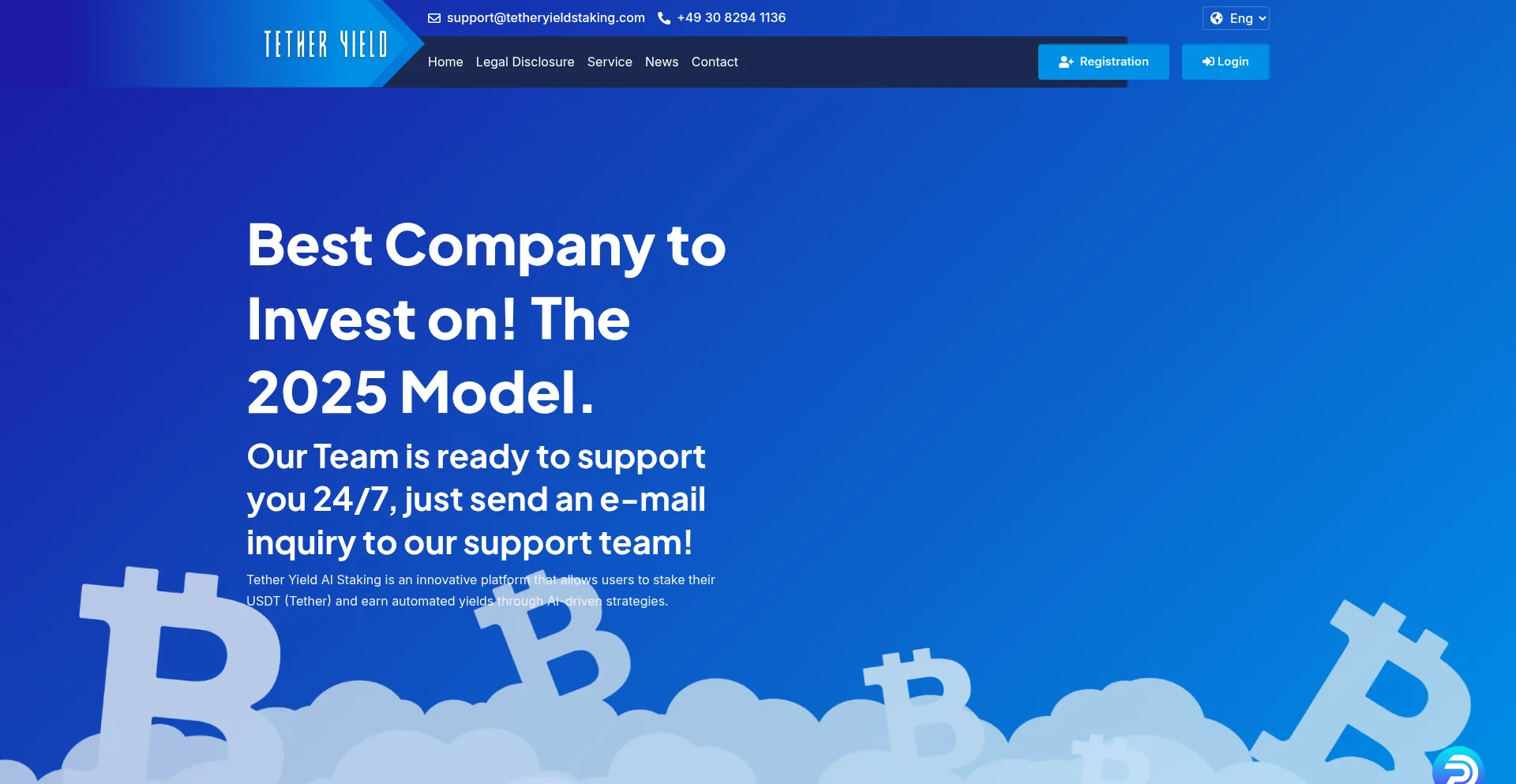 该网站实现数据收集表单,请求个人信息,包括姓名、电子邮件地址、电话号码或其他敏感详细信息。用户应验证 tetheryieldstaking.com 的合法性并在提交个人数据前查看隐私政策。