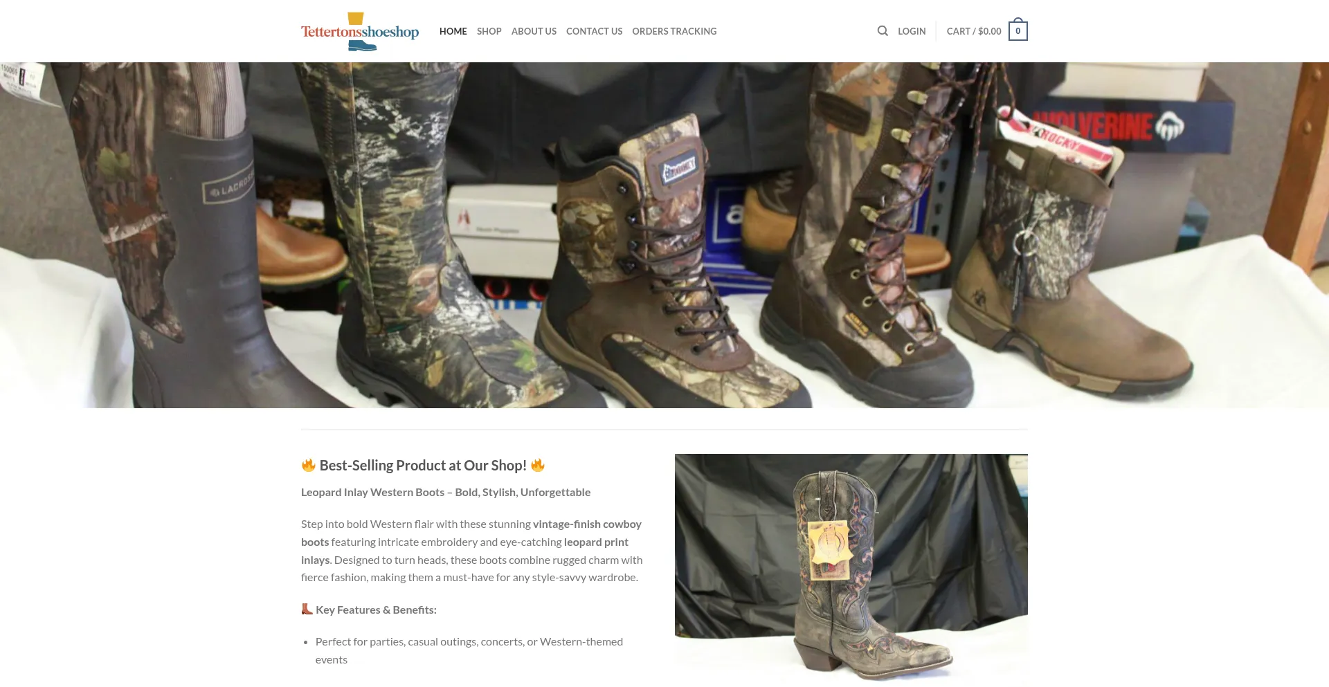 分析表明 tettertonsshoeshop.com 作为电子商务平台运营,促进商品或服务的在线交易。该网站实现了购物车功能、支付处理系统和产品目录功能,这些是商业零售运营的典型特征。