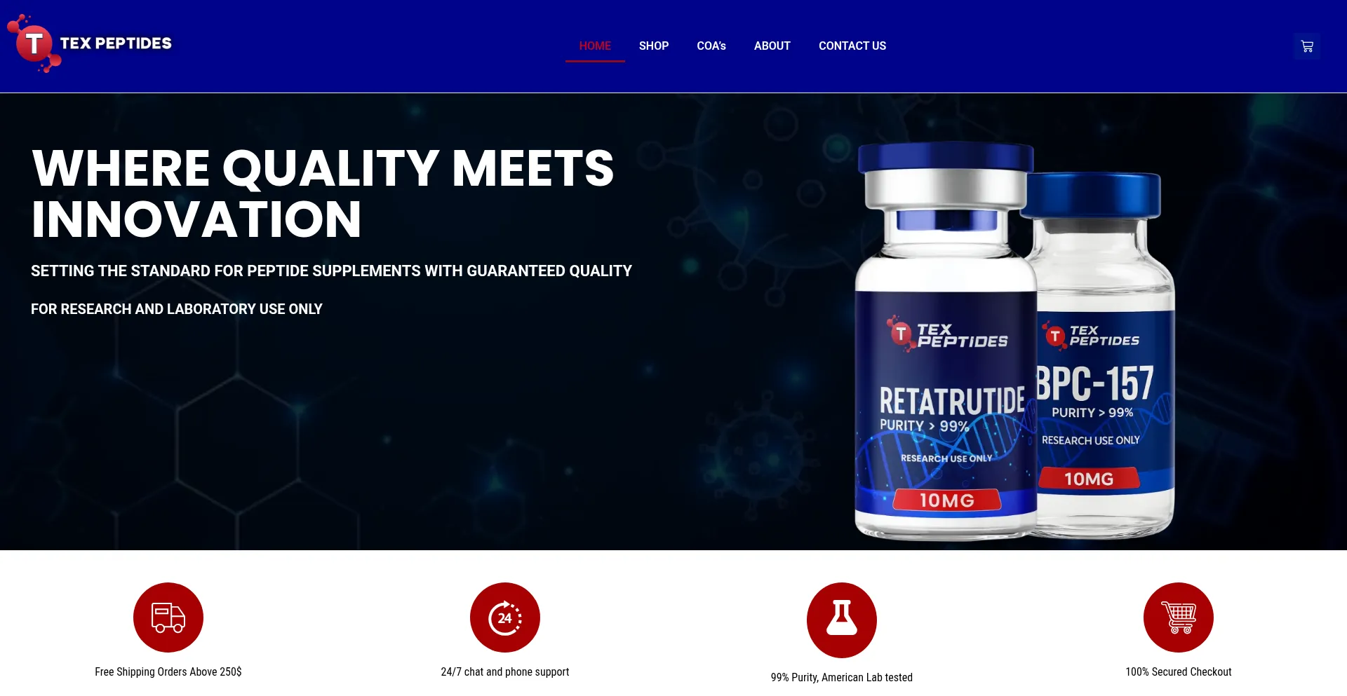 分析表明 texpeptide.com 作为电子商务平台运营,促进商品或服务的在线交易。该网站实现了购物车功能、支付处理系统和产品目录功能,这些是商业零售运营的典型特征。
