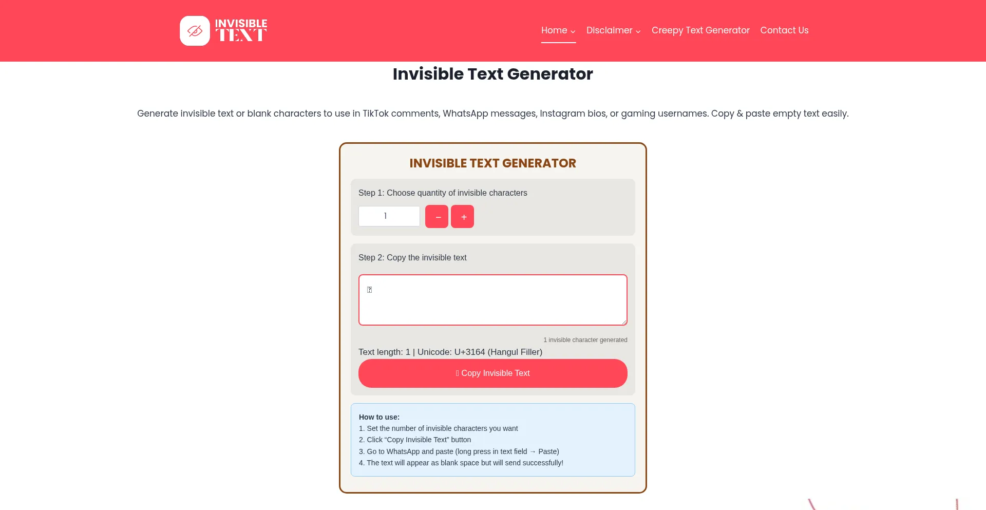 Invisible Text Generator (ㅤ) – Blank Text Copy and Paste