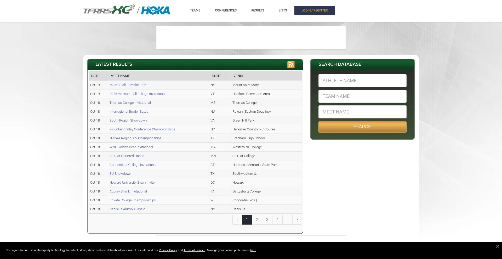该网站实现数据收集表单,请求个人信息,包括姓名、电子邮件地址、电话号码或其他敏感详细信息。用户应验证 tfrrs.org 的合法性并在提交个人数据前查看隐私政策。