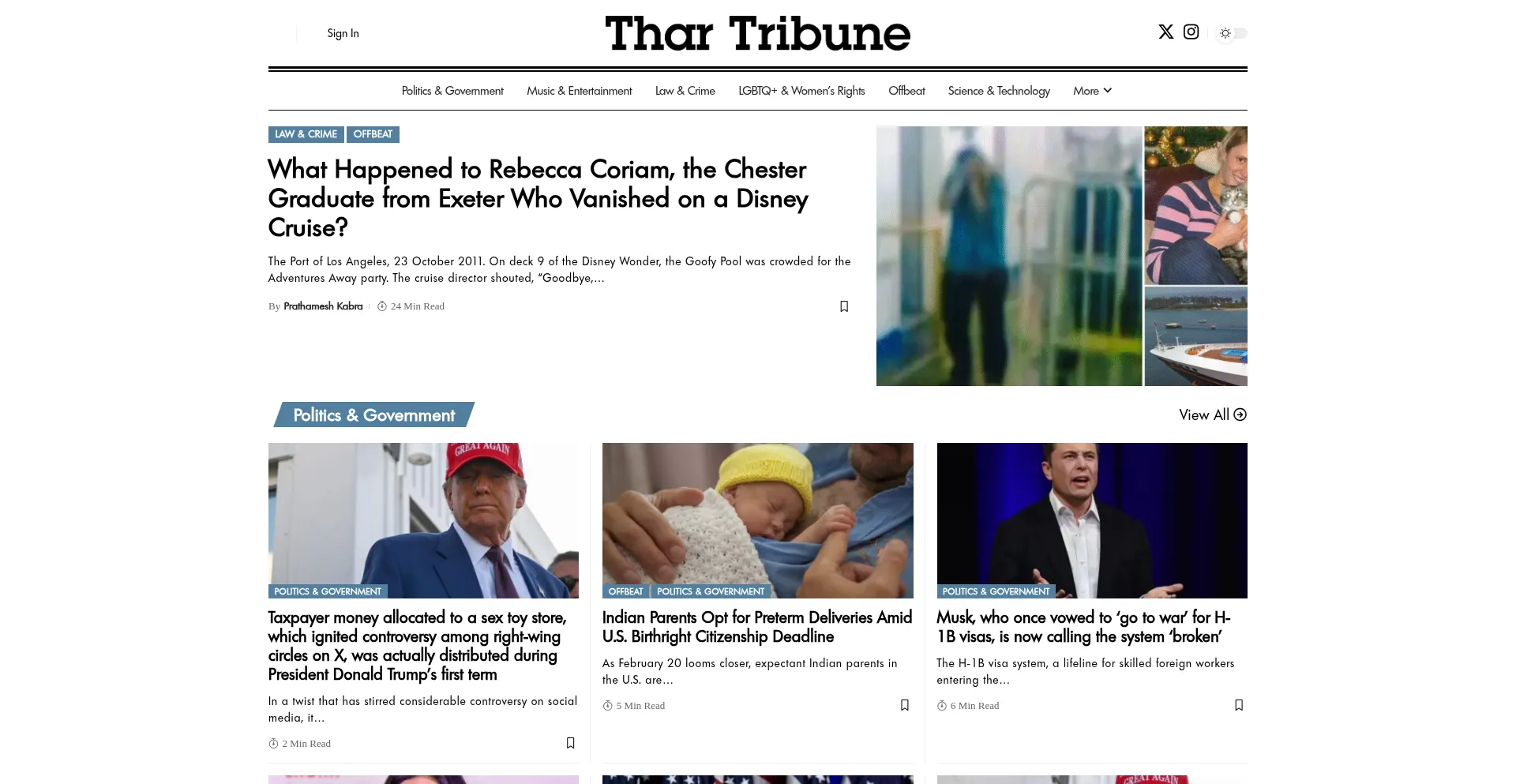 网站上存在社交媒体链接表明 thartribune.com 在社交媒体上维护官方账户,这是可信度和参与度的积极信号。