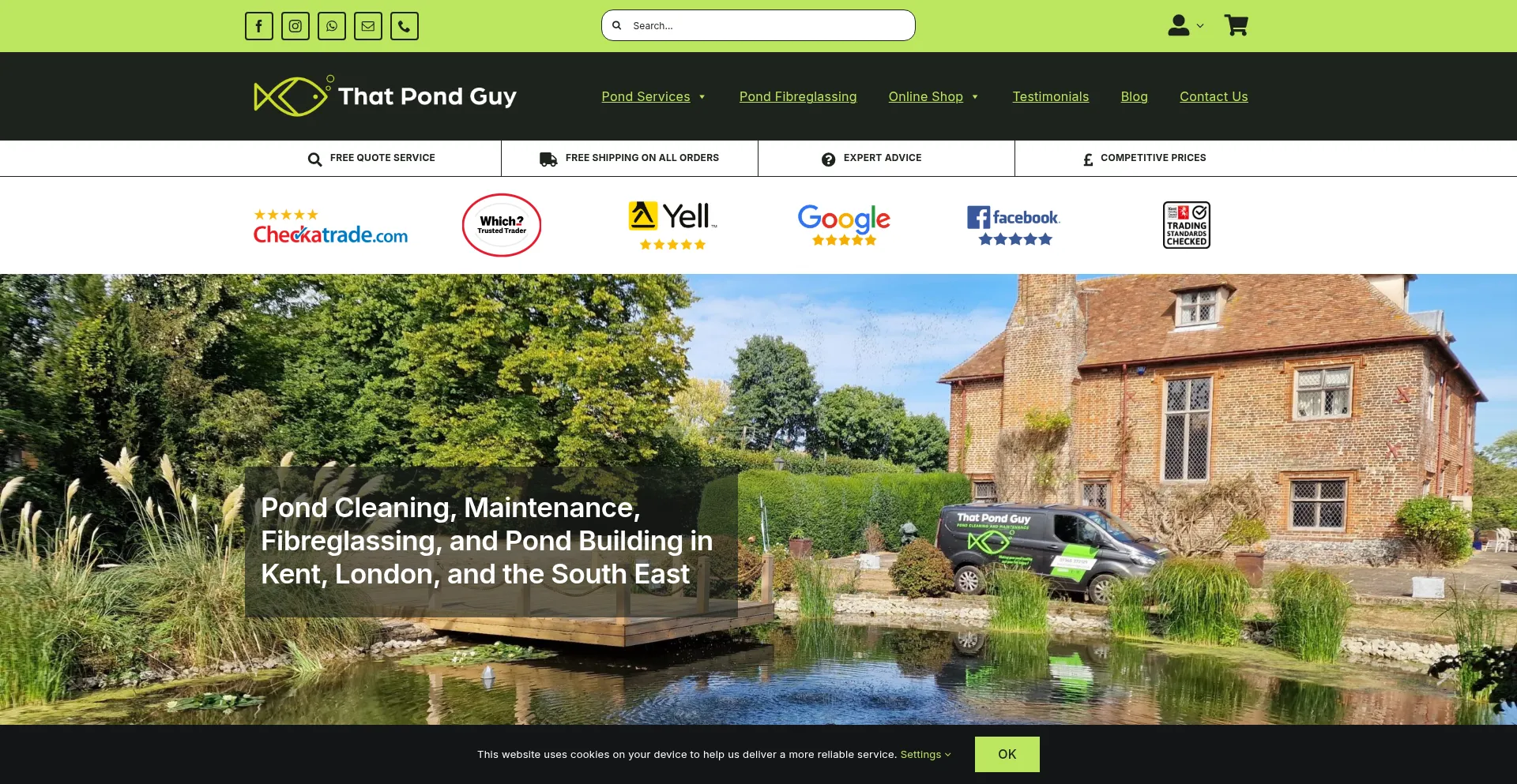 网站上存在社交媒体链接表明 thatpondguy.co.uk 在社交媒体上维护官方账户,这是可信度和参与度的积极信号。