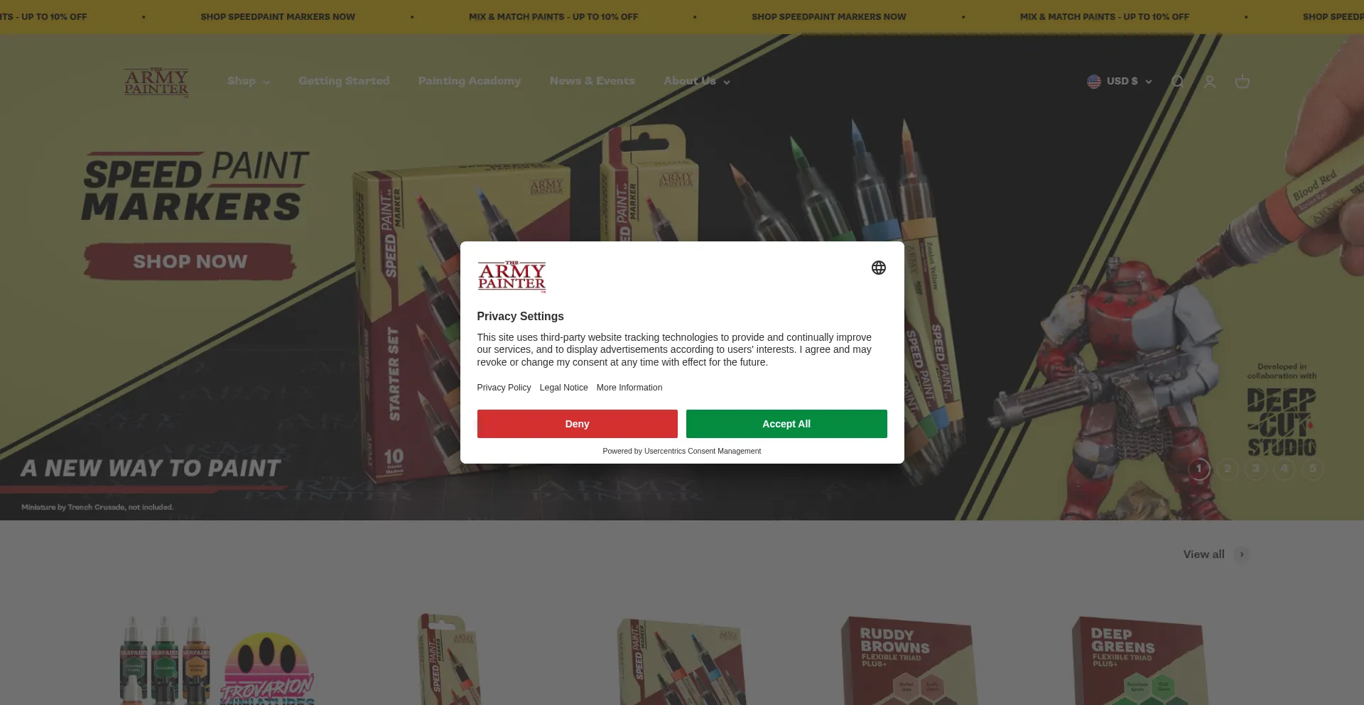该网站实现符合GDPR或CCPA等隐私法规的cookie同意机制。这表明 thearmypainter.com 遵守数据保护标准并为用户提供对个人数据收集实践的控制。